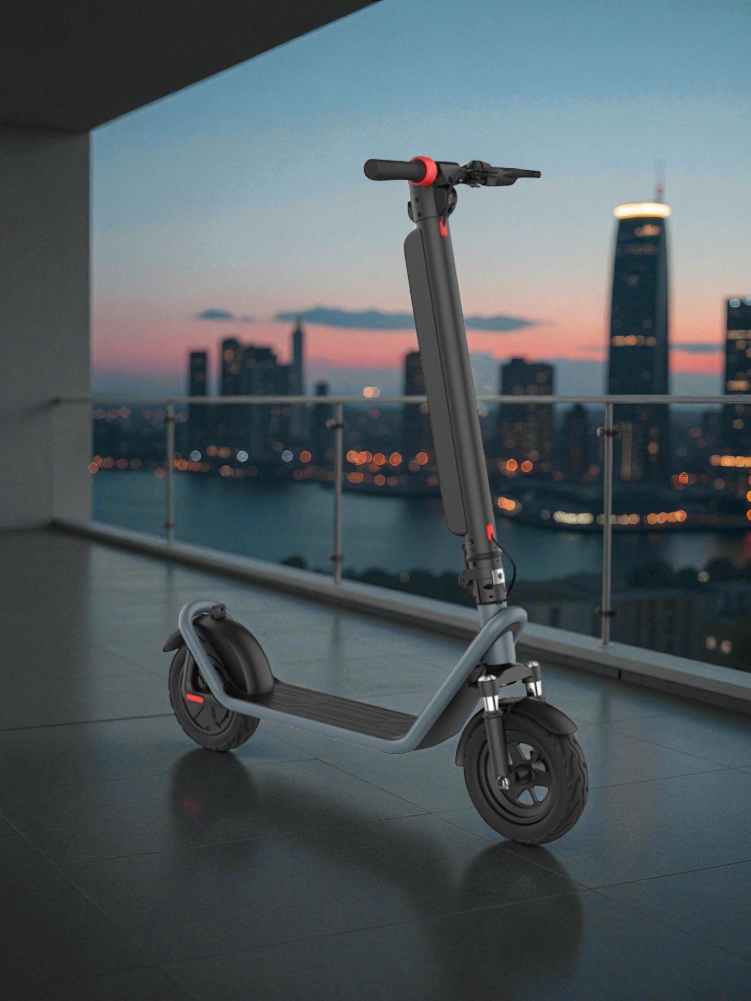 The X11 packs power and agility in a sleek aluminum frame. With a 36V/450W rear motor and 10-inch tires, it reaches speeds up to 35 km/h and climbs 20° slopes. Its 36V/13Ah removable battery offers a 40–45 km range. Weighing 19 kg, it folds compactly for easy transport and features front shock absorbers and IPX4 water resistance. The X11 can carry up to 100 kg and ride boldly.